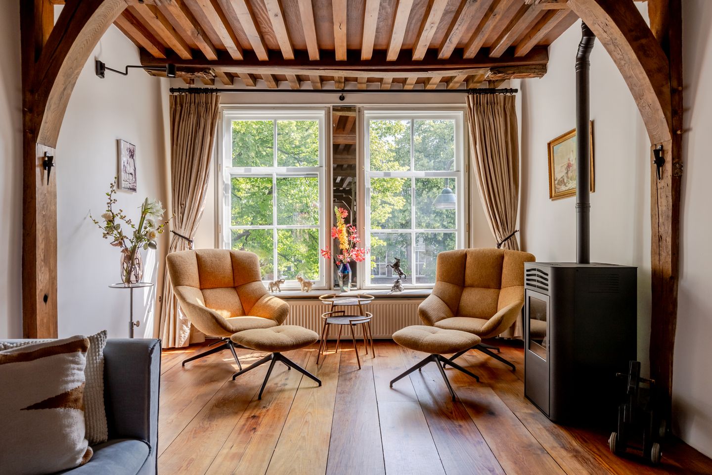 De charmante living met uitzicht op het hart van Gouda!