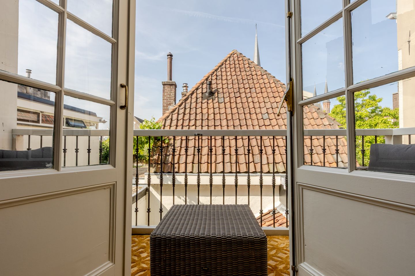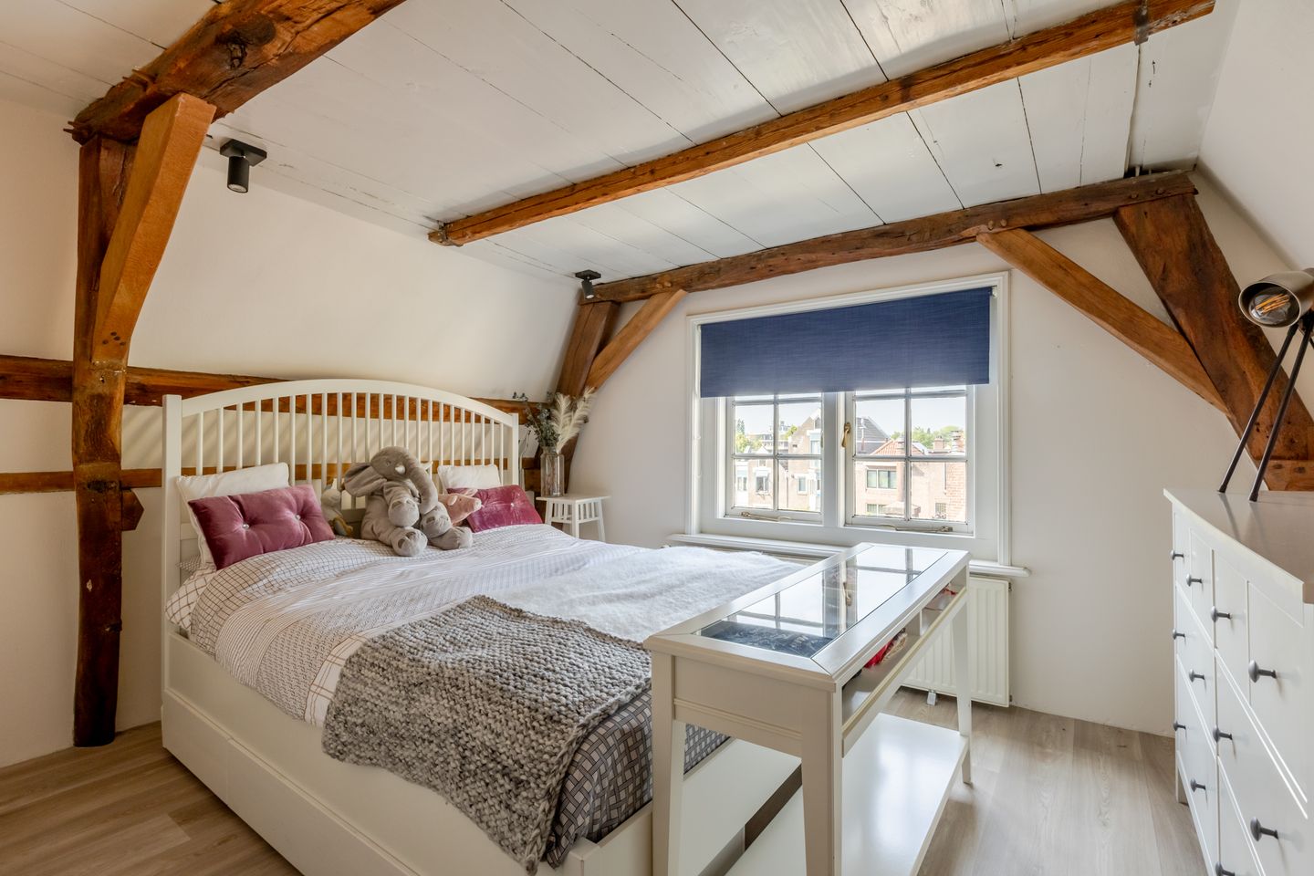 Aan de achterzijde bevindt zich een tweede royale slaapkamer met vaste kast en prachtig uitzicht over de binnenstad, inclusief de Hoge Gouwe kerk en de Barbaratoren. Beide slaapkamers worden extra sfeervol gemaakt door de volledig zichtbare kapconstructie.